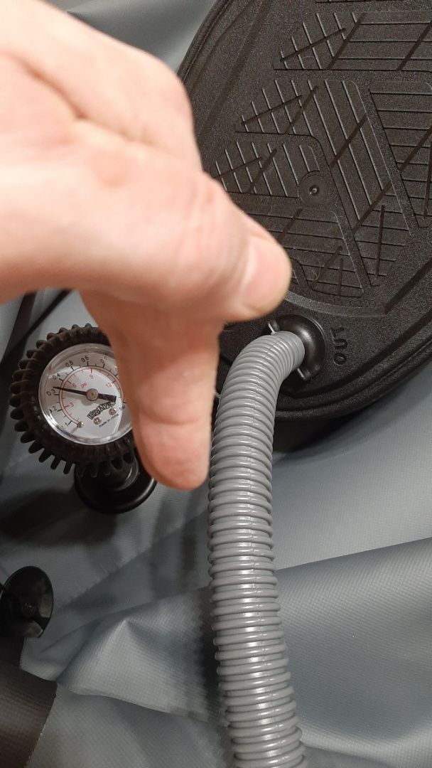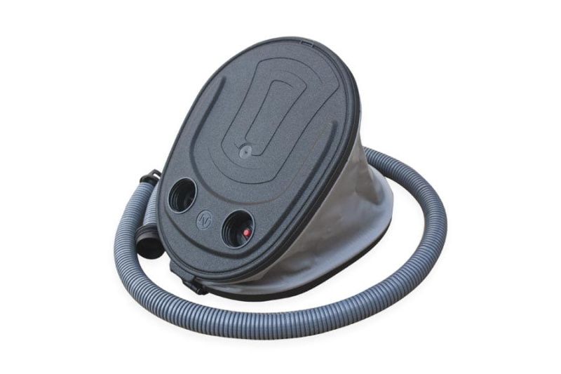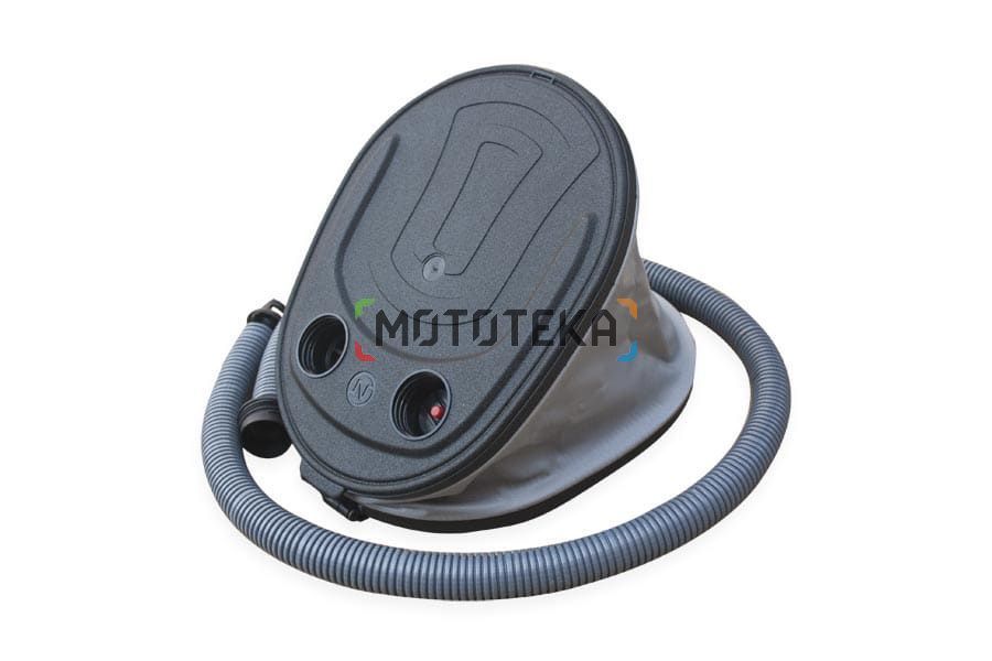 Ножной насос для наполнения надувных лодок воздухом. Способен качать до 300 мБар, проверено неоднократно, опытным путем. Так же этим насосом можно сдувать лодки, то есть он двухстороннего действия. Является оригинальным комплектующим для множества лодок производства компаниии "Мастер Лодок". Наконечник на шланге под клапаны Ника.